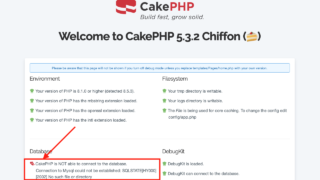 CakePHP CakePHP 5で「CakePHP is NOT able to connect to the database.」 記事内に広告が含まれています。おつかれさまです。すぺきよです。仕事でCakePHP5を使う機会があり、チュートリアル中です。初期セットアップなどはうまく行き、Dockerを使用して環境構築も成功。DBの設定をconfig/app.phpに設... 2026.03.01 CakePHPPHP